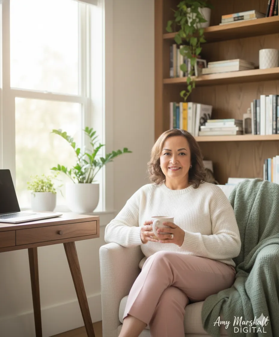 No. I'm a mom who's been where you are. I stood in that quiet house and wondered who I was beyond "Mom." I'm not an expert—I'm someone who figured it out and wants to share what I learned. Think of me as a friend who's a few steps ahead on the same path.